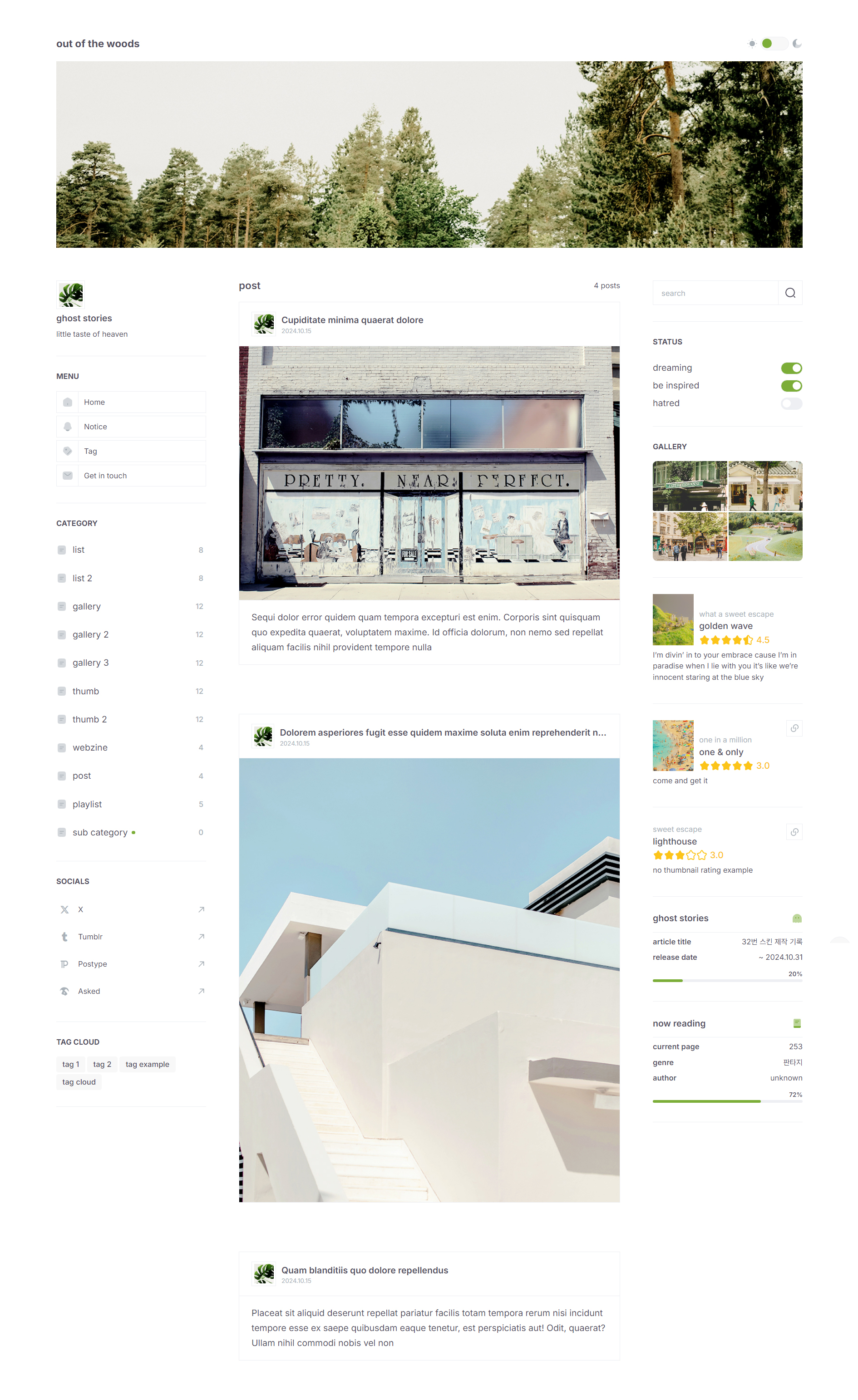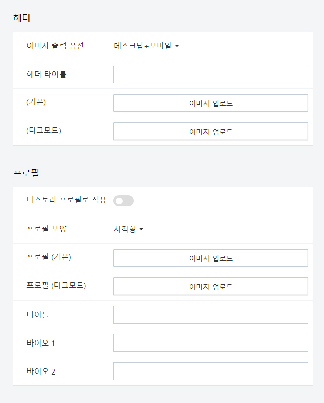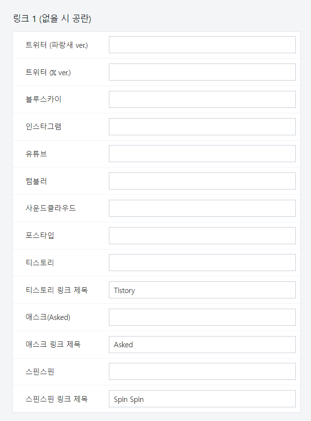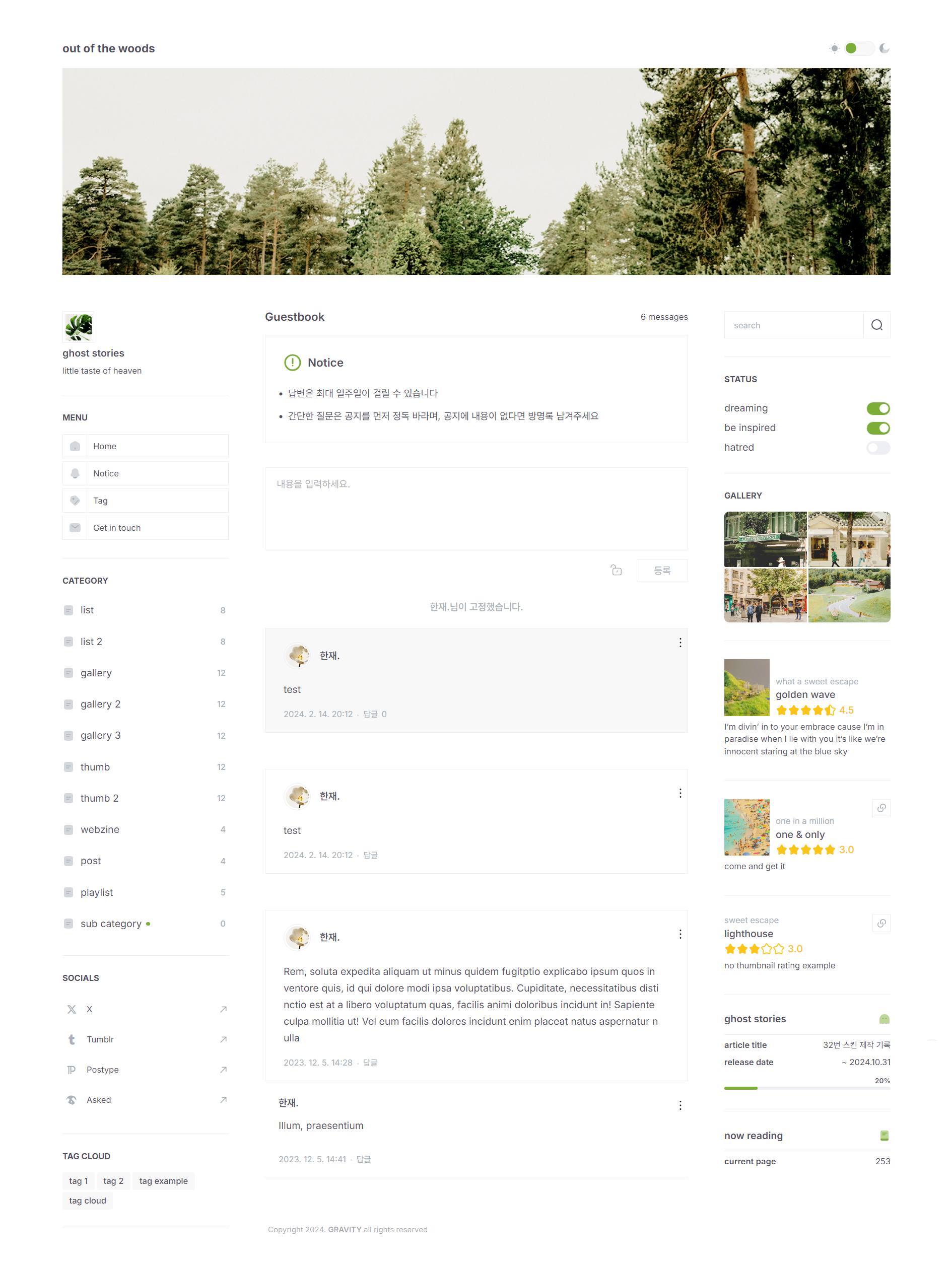 프로필 / 메뉴 / 카테고리 / 링크 / 태그 클라우드 / 검색창 / 블로그 상태 / 최근 갤러리 / 별점 3개 / 프로젝트 3개