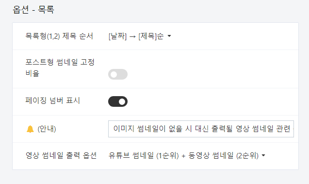 - 영상 썸네일의 출력 조건은 이미지 썸네일이 존재하지 않을 때입니다.